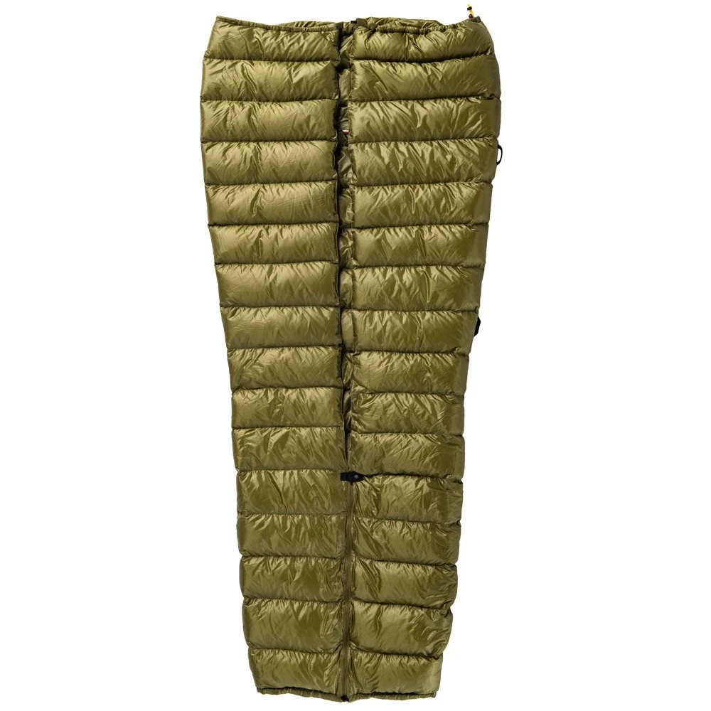 Gefüllt mit 700 Cuin FP Entendaune aus Polen, sorgt dieses Teil für gute Isolation – ob auf dem Boden oder in der Hängematte! Zusätzlich kann über einen Kordelzug die Fußbox verschlossen werden und über den seitlichen Reißverschluss wird der Quilt zum Sommerschlafsack ohne Kapuze.