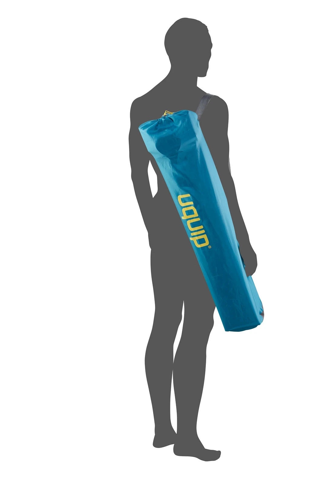Die Höhe der Rückenlehne beträgt 92cm. Durch die kompakte Bauform wird ein Packmaß von 96cm x 22cm erreicht. So lässt er sich bequem vom Auto zum See transportieren.